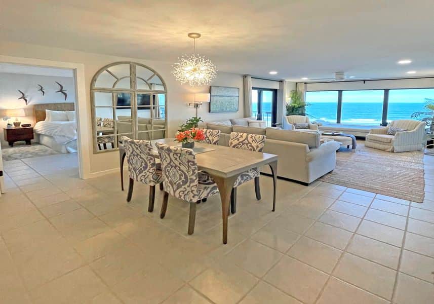 Welcome to your private oceanfront escape, a completely reimagined two-bedroom condo with almost 40 feet of very private, uninterrupted, panoramic views of the Atlantic. Enjoy the sound of the waves from the living room or either of the two balconies off each of the 2 oceanfront king suites.
