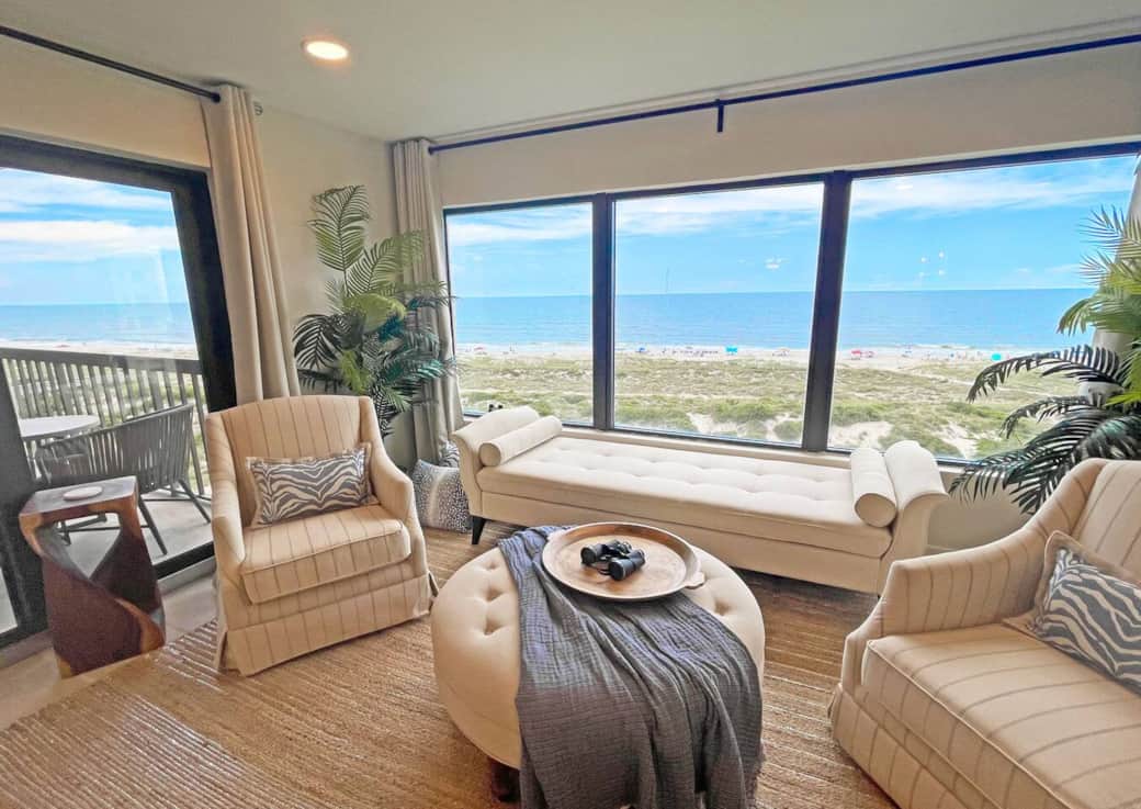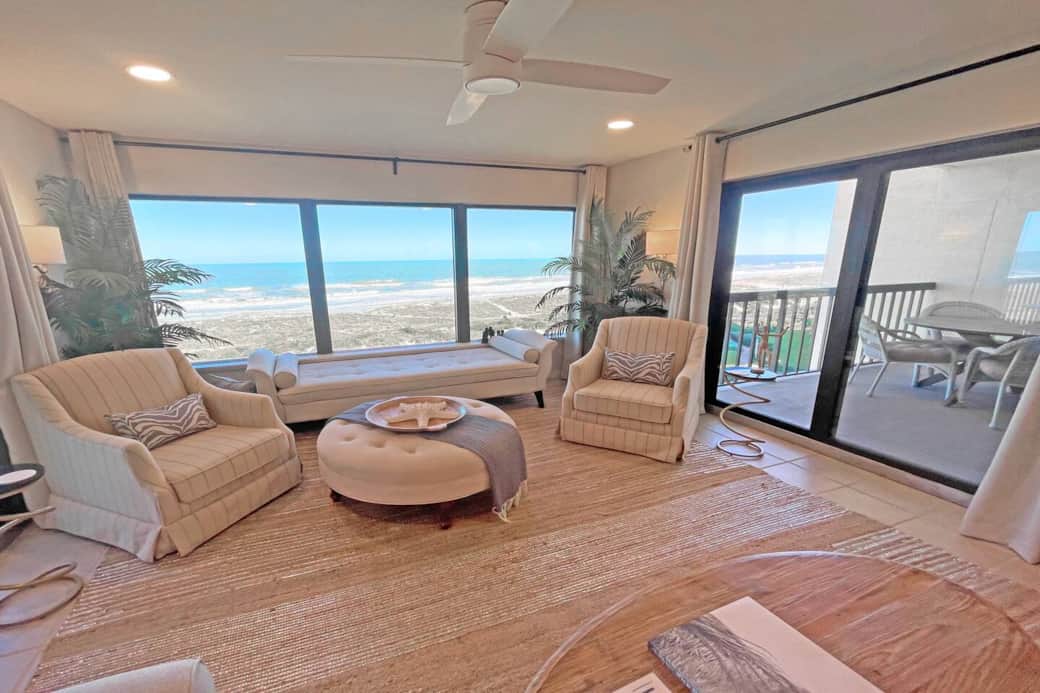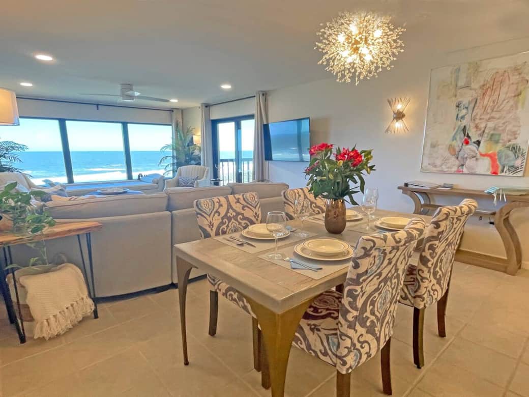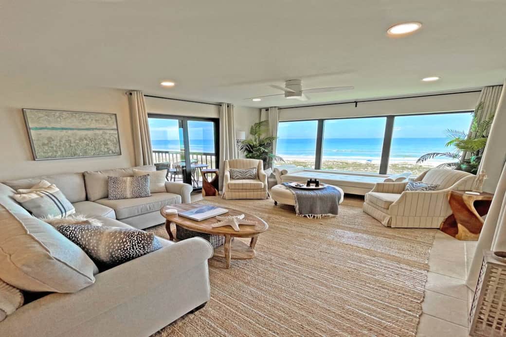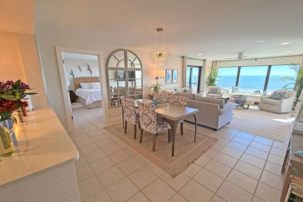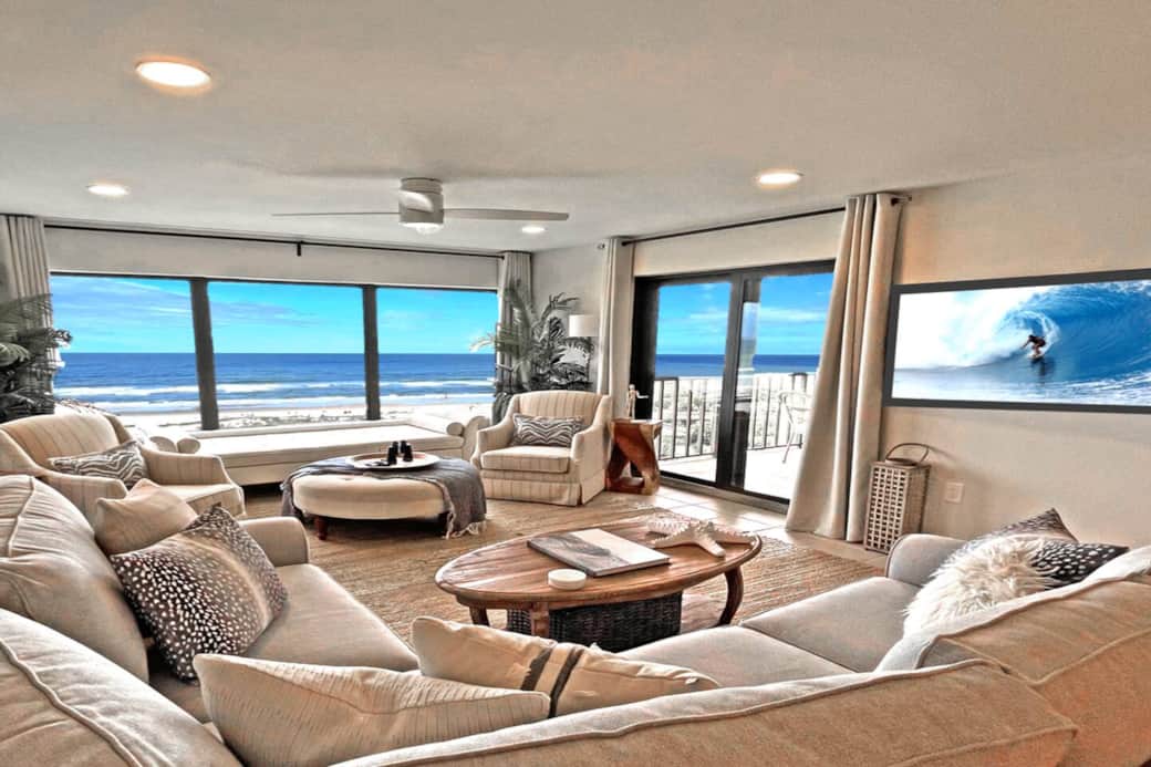 Almost 40 feet of ocean frontage between the 2 bedrooms and living room