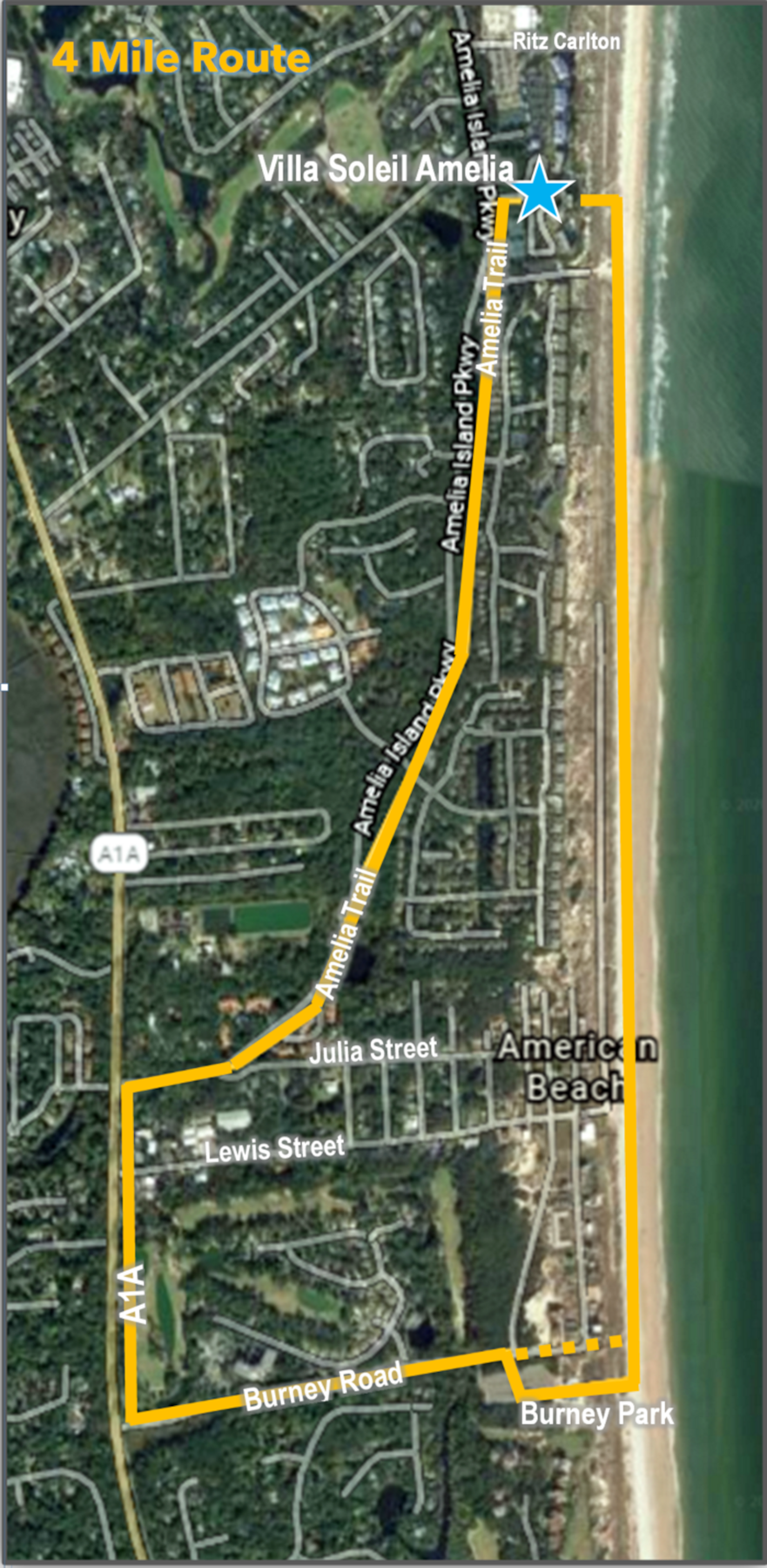 This 5 mile route takes you through gated Amelia Island Plantation. On foot, there is no problem just walking in.